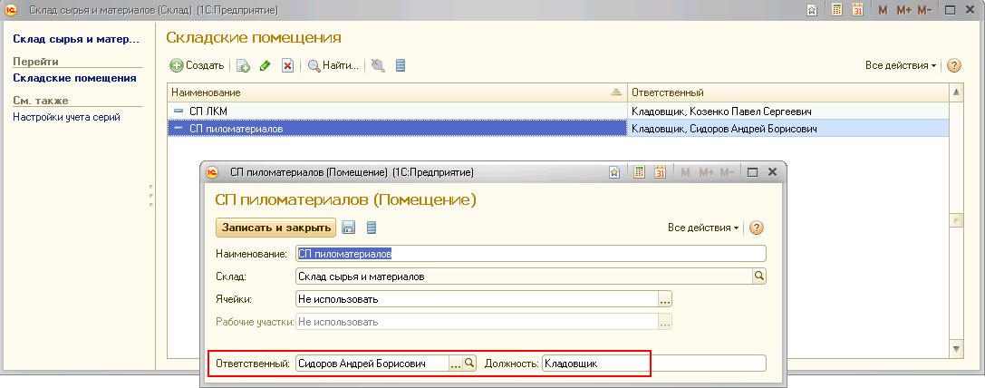 - Справочник «Склады», добавление нового склада.