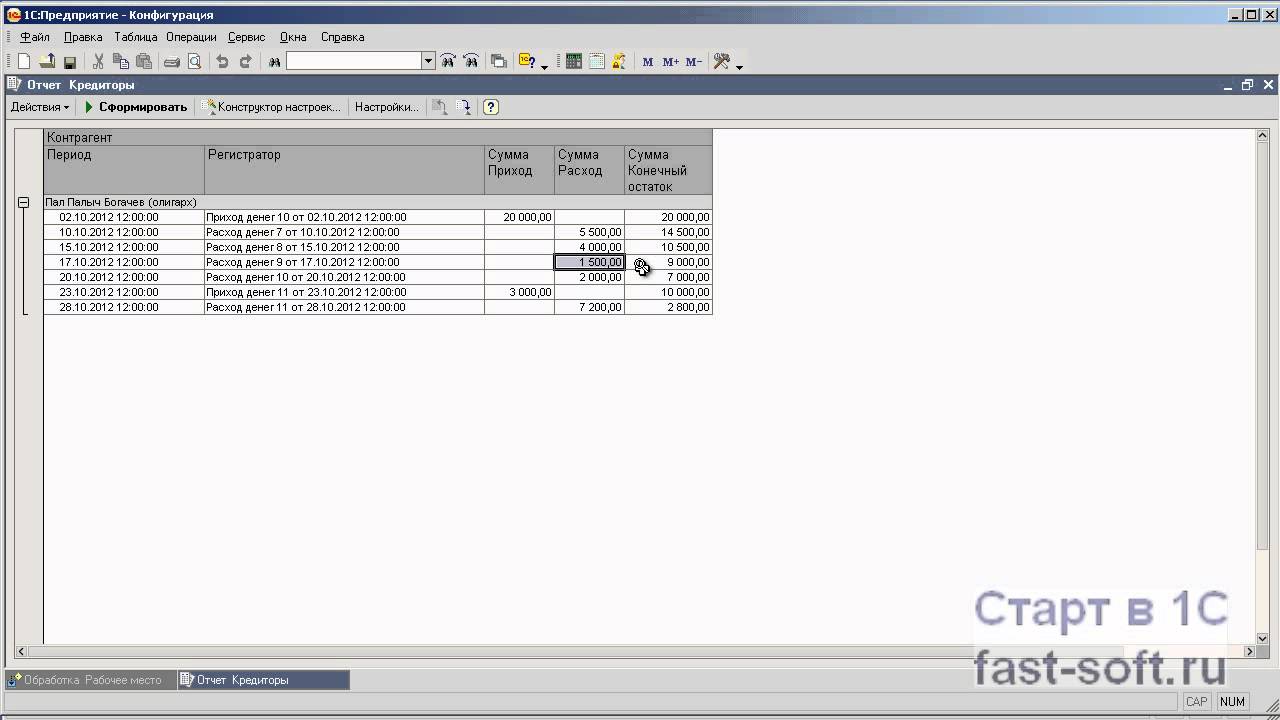 д. Проведите в программе 1C все действия, встречающиеся в повседневной жизни предприятия.