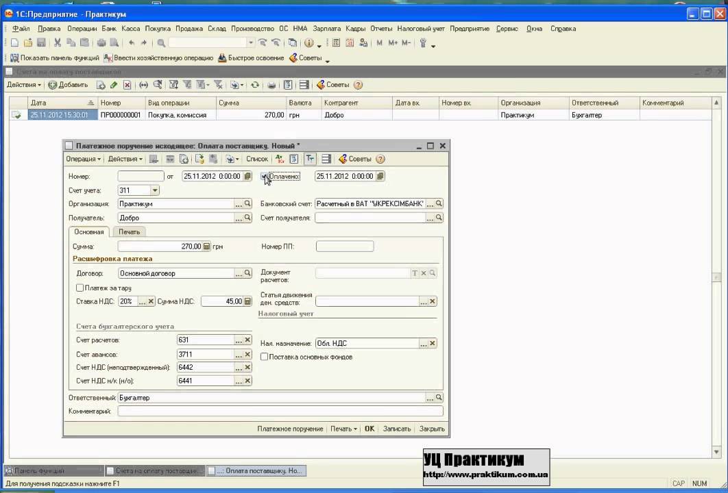 Банк и касса в 1С Бухгалтерии