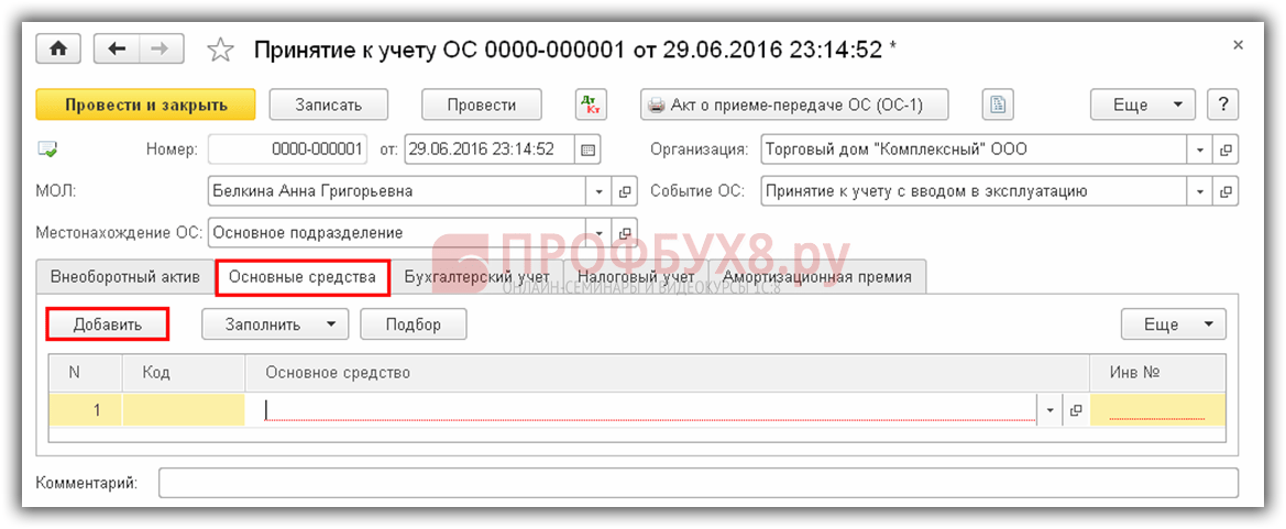Как принять к учёту основные средства в 1С:Бухгалтерия 8