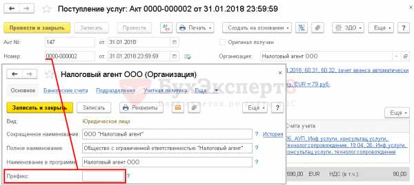 Если создаются документы по Организации, в которой задан Префикс, то Префикс указывается в самом начале номера.