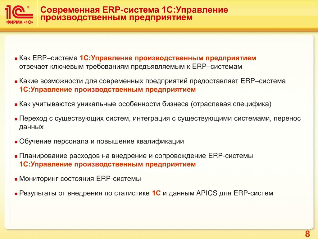 «1С:ERP – Управление предприятием» — комплексное решение для организации учета на предприятии любого уровня. Состоит из нескольких подсистем.
