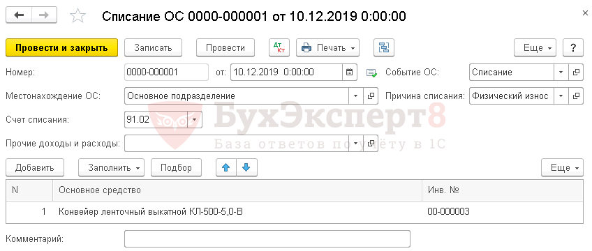 Пример списания основных средств