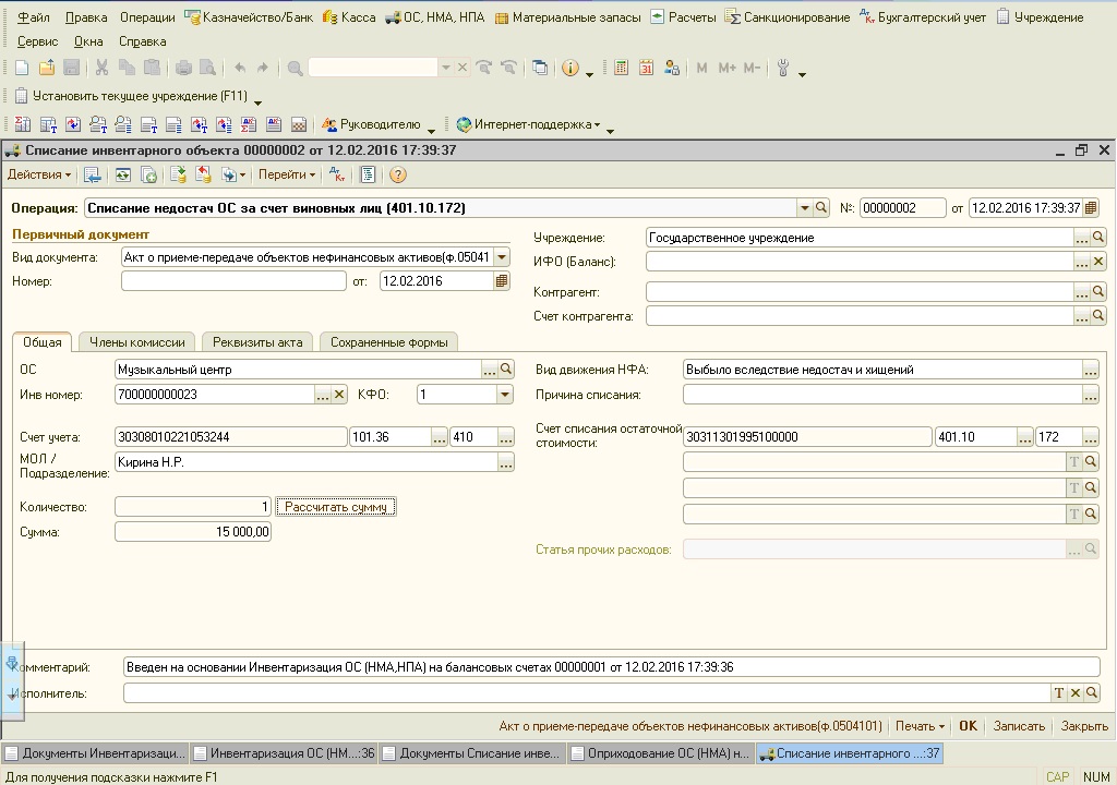 2. Списание основного средства.