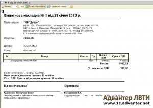 В результате мы имеем ТТН в 1С и можем напечатать товарную накладную.