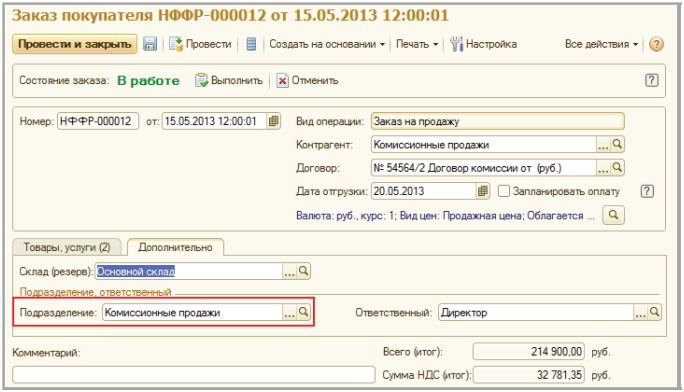 Если выбрать режим Автоматически, ордера создадутся абсолютно автоматически при проведении заказа клиента. Не понравилось только то, что 1С не дает никакой информации о том, что создались ордера (или не создались).