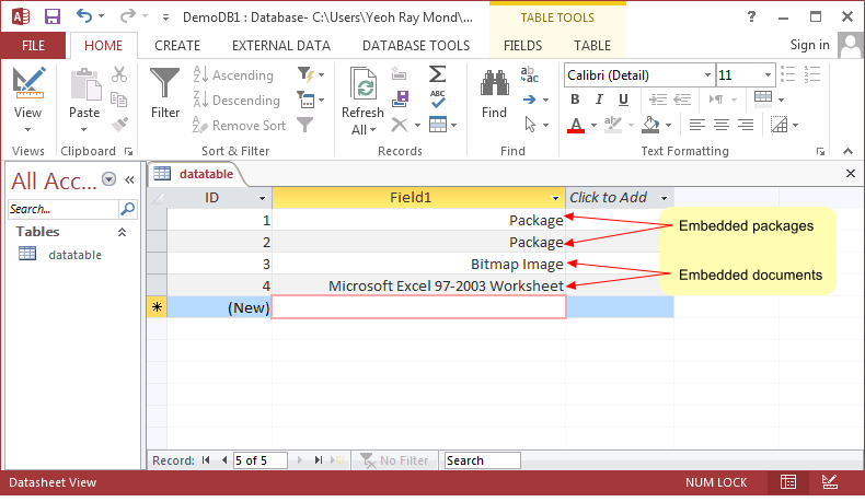 Дважды нажмите shift+TAB, чтобы переместить фокус на поле Имя файла, а затем введите имя базы данных.