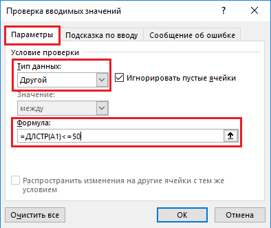 Другой — предоставляется возможность более широко контролировать ввод данных, условие проверки задается с помощью формулы.