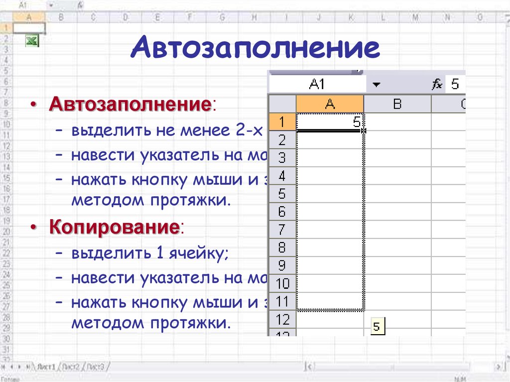 Ячейки и диапазоны Excel — Автозаполнение