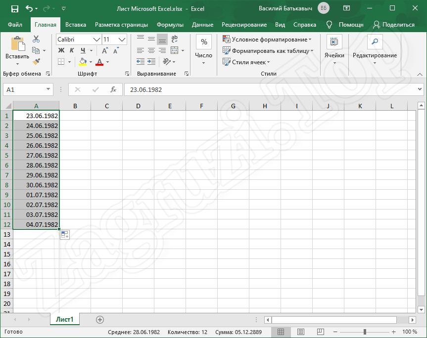 Небольшой черный квадрат в правом нижнем углу активной ячейки или диапазона называется маркером заполнения. В выделенном диапазоне ячеек имеется только один маркер заполнения.