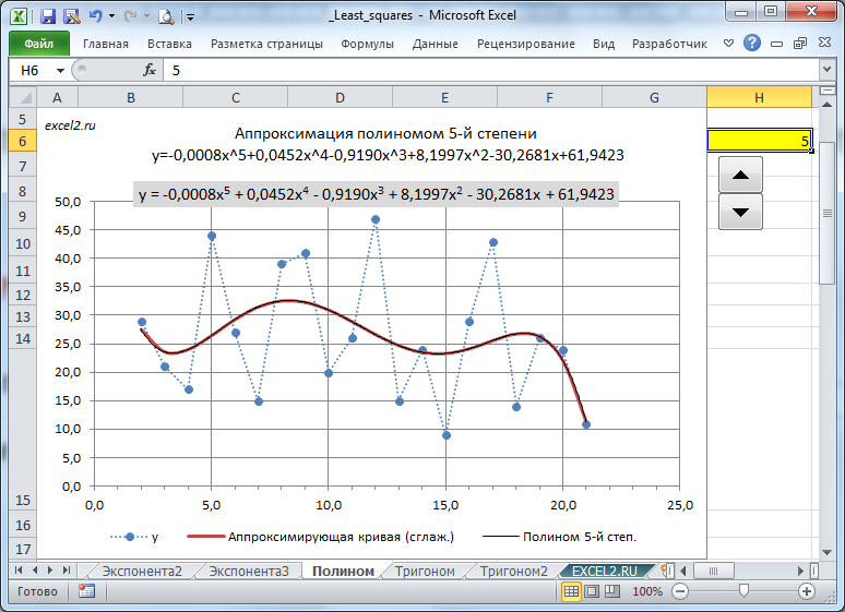 Если выбрана полиномиальная,введите в поле «Порядок» наивысшую мощность для независимой переменной.