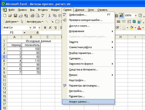 При выборе скользящегосреднего введите в поле «Период» количество периодов, используемых для расчета скользящего среднего.