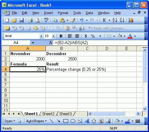 Чтобы вычислить процентную разницу между двумя числами, например, чтобы увидеть, насколько ваш годовой доход увеличился или уменьшился, вам понадобится следующая формула: