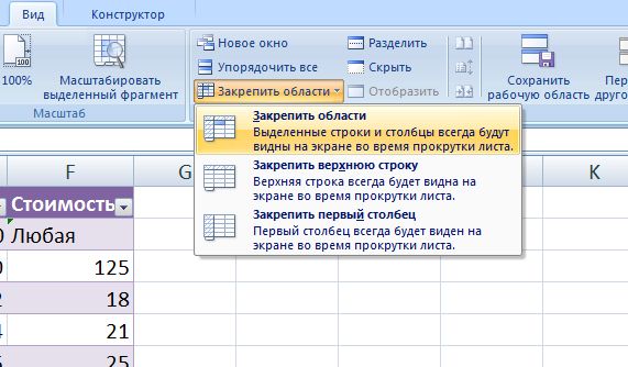 Описанные методы актуальны для версий 2007, 2010 и 2013. В версиях 2000 и 2003 инструмент фиксирования находится в другой вкладке – «Окно».