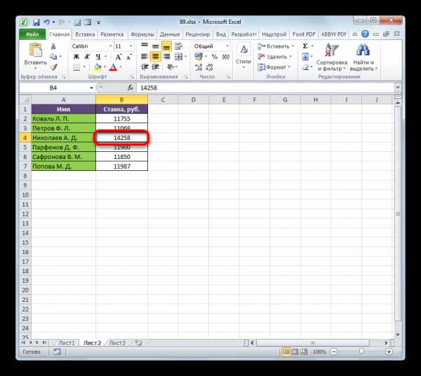 - Возвращаемся на Лист 2 и изменяем размер ставки любого работника.