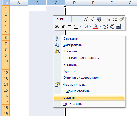 Чтобы удалить столбец, щелкните Удалить весь столбец.