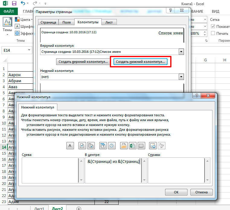 Как разместить верхние и нижние колонтитулы на нескольких листах Excel?