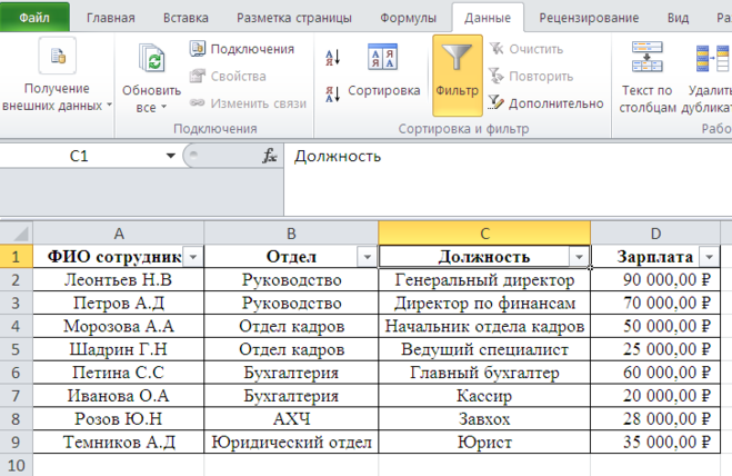 Выделите диапазон A3:D12 и выберите Данные > Сортировка и фильтр|Фильтр . Данные изменятся, как показано на рисунке 7.