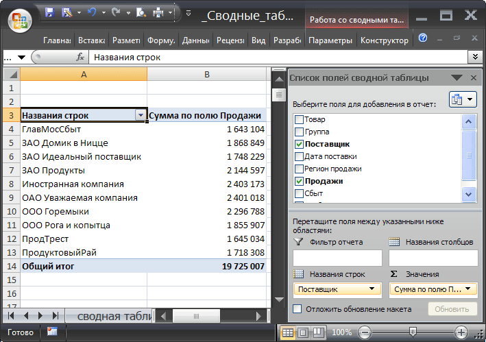 В итоге ваша Сводная таблица должна будет принять следующий вид: