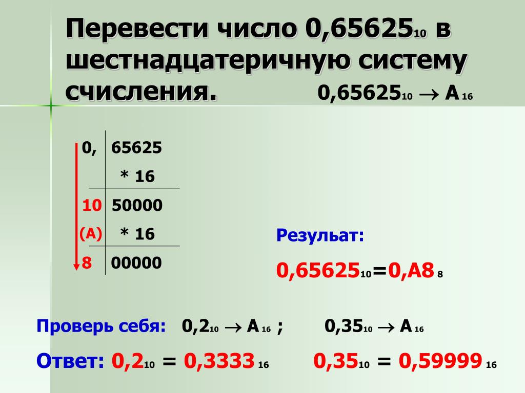 16 ÷ 16 = 1 (Остаток 0) 1 ÷ 16 = 0,0625 0,00625*16:1 (Остаток 1)