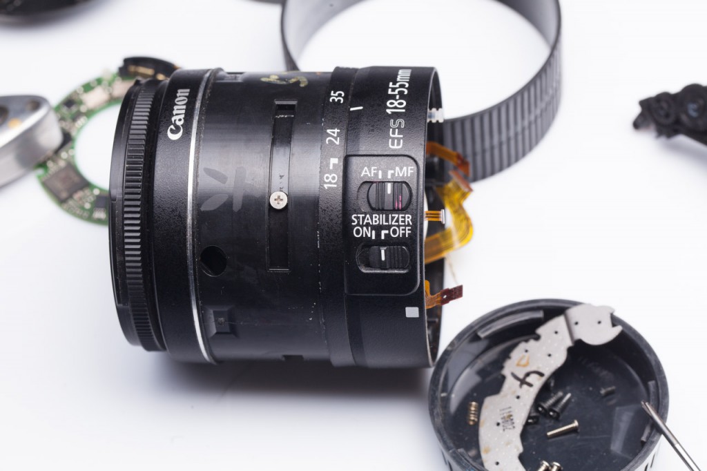 В конструкции Canon EF-S 18-55mm f/4-5.6 IS STM много пластика. Это объясняет относительно доступную цену и малый вес. Традиционным компромиссным решением для «китовой» оптики является и пластиковый байонет (крепление к камере).
