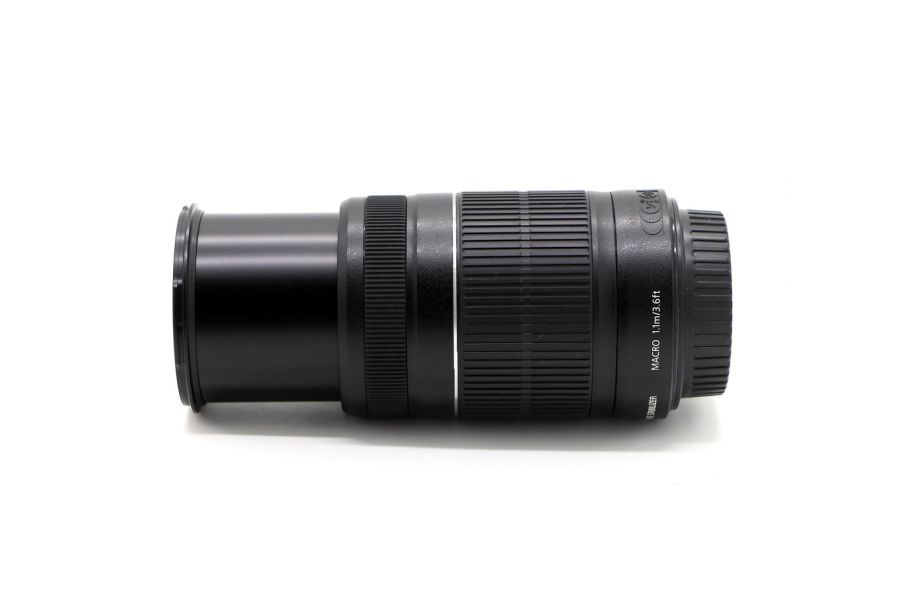 5-5.6 EF-S составляет всего 200 грамм. Сам объектив изготовлен в Тайланде. В объективе используется оптическая схема из 11 элементов в 9 группах, и один из этих элементов является асферическим. Кольцо зума прорезинено, фактически кольцо зумирования составляет самую большую визуальную часть объектива. Диаметр переднего фильтра составляет 58мм. По обозначению на объективе, он может использоваться 10 лет, перед тем, как будет утилизирован.