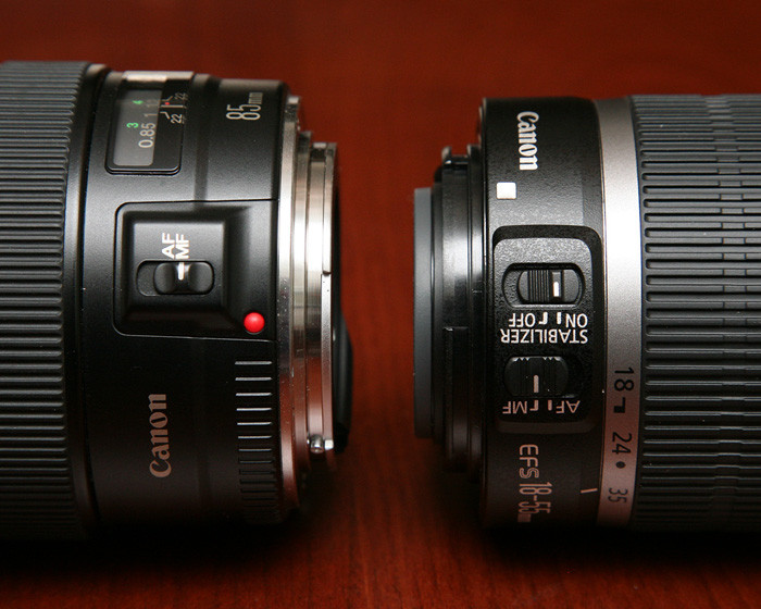 Canon Zoom Lens EF-S 18-55mm 1:3.5-5.6 IS является одним из самых простых вариантов объектива для современных кропнутых камер Canon APS-C типа. Обозначение EF-S указывает на то, что объектив можно использовать только на фотоаппаратах с кропнутой матрицей, например, таких как Canon 600D, 7D, 1100D и нельзя использовать на камерах по типу Canon EOS-1D Mark II, Canon EOS 5D, Canon EOS 1Ds Mark III. Я никогда не встречал людей, которые бы хотели использовать китовый кропнутый объектив на полнокадровых камерах.