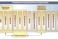 Diese allumfassende Lösung für mittlere und große Betriebe, die auf Basis der Software 1C: Enterprise 8 erarbeitet wurde, umfasst als einzelner Funktionsblock: