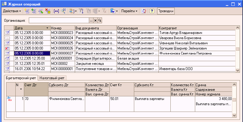 Электронный учебник 1С:Бухгалтерия 7.7 — Урок 6, вопр.2: Журнал операций.