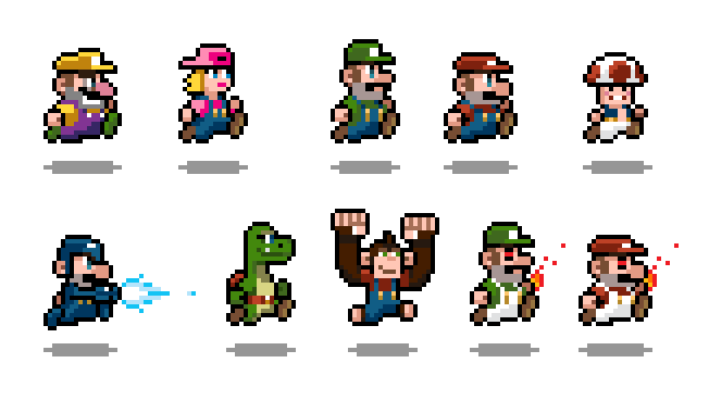 Для этого нам придется выполнить ряд действий и первое из них — достать подходящие спрайтшиты (Sprite Sheet). Спрайтшит — это изображение, на котором содержаться кадры анимации для нашего персонажа. Думаю, ни для кого не секрет, что анимация — последовательное и быстрое отображение неанимированных кадров, каждый из которых немного отличается от предыдущего. Погуглите по запросу Sprite Sheet, и вы сразу поймете, что это такое. Нам нужны спрайтшиты для состояний покоя, бега и прыжка. В архиве со спрайтами есть файлы