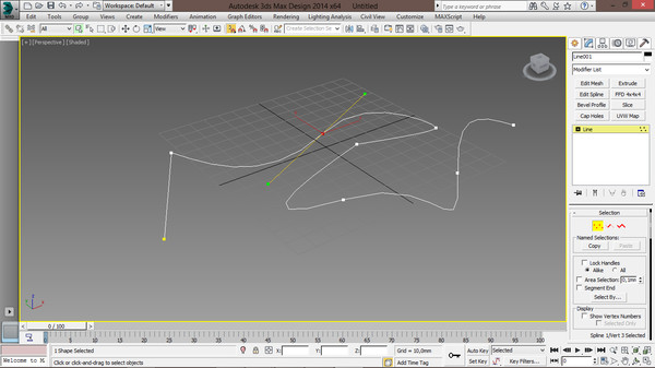 Для этого, переходим по стеку модификаторов к модификатору Editable Spline. Затем, выбираем режим редактирование точек Vertex и включаем режим привязки 2.