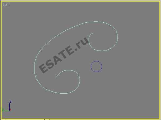 Рисунок 1. Линия пути в виде сплайновой кривой и сплайн-профиль сечения кронштейна. Шаг 4. Создание кронштейна методом лофтинга. Щелкните на кнопке Geometry (Геометрия) командной панели Create (Создать) и выберите в раскрывающемся списке разновидностей объектов вариант Compound Objects (Составные объекты). Проследите, чтобы форма-путь была выделена, так как для обеспечения доступа к кнопке Loft (Лофтинговые) в составе сцены должна иметься хотя бы одна выделенная форма. Щелкните на кнопке, и в нижней части командной панели появятся свитки параметров лофтинга: Creation Method (Метод создания), Surface Parameters (Параметры поверхности), Path Parameters (Параметры пути) и Skin Parameters (Параметры оболочки).