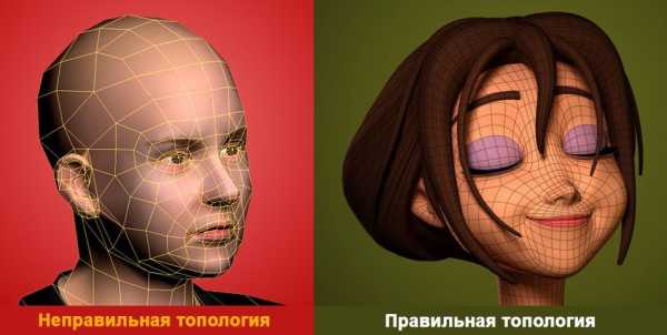 Давайте рассмотрим топологию на примере моделей предназначенных для анимации.