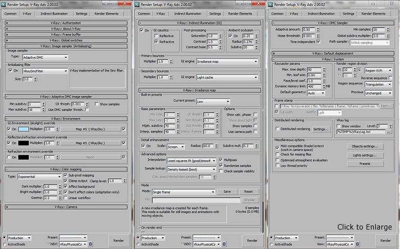 Лично я предпочитаю использовать физическую камеру 3DS Max с показанными здесь настройками. Вот краткое объяснение того, почему мне нравятся эти настройки.