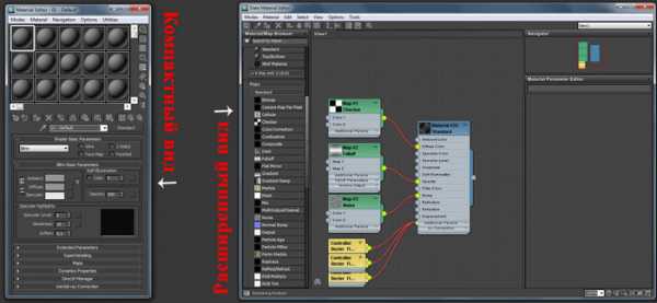 Material Editor имеет два вида: компактный и расширенный (имеет те же функции, но более удобен визуально). Для знакомства будем использовать компактный вид.