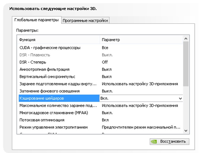 Важный параметр, который нужно включить. Он отвечает за хранение предустановок, называемых шейдерами, на диске. Включенный параметр кэширования позволит видеокарте быстрее получать необходимые значения, что снизит нагрузку на игру.