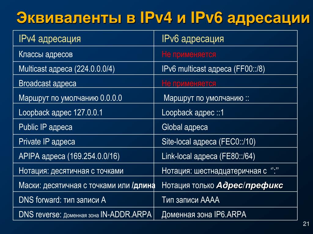 Чтобы упростить запись этих адресов, используйте сжатую форму, в которой одна непрерывная последовательность из 0 блоков представлена символом с двойным двоеточием ( ::). Этот символ может появиться только один раз в адресе. Например, многоадресный адресFFED:0:0:0:0:BA98:3210:4562в сжатом виде равенFFED::BA98:3210:4562. Адрес индивидуальной рассылки3FFE:FFFF:0:0:8:800:20C4:0в сжатом виде — это3FFE:FFFF::8:800:20C4:0. Адрес обратной связи0:0:0:0:0:0:0:1в сжатом виде равен::1. Неуказанный адрес0:0:0:0:0:0:0:0в сжатом виде равен::.Смешанная форма: