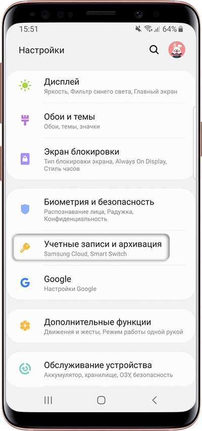 Выберите пункт «Учетные записи и архивация» или «Облако и учетные записи». Если такого пункта нет, перейдите к следующему шагу.