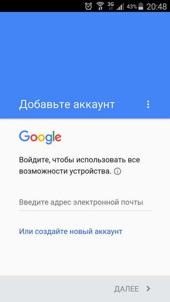 При первом включении любое Android-устройство попросит создать или авторизоваться в аккаунте Google.