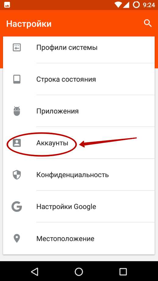 - Найдите в этом разделе пункт «Аккаунты» или «Учетные записи».