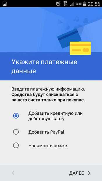 Если вы планируете не только устанавливать бесплатные приложения, но и что-то покупать в Google Play, то нужно настроить платежные данные.
