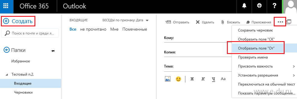 Выберите один из электронных адресов подключенной учетной записи, если нужно, чтобы поле От: всех сообщений, на которые вы отвечаете из Outlook Web App, совпадало с электронным адресом одной из ваших подключенных учетных записей.