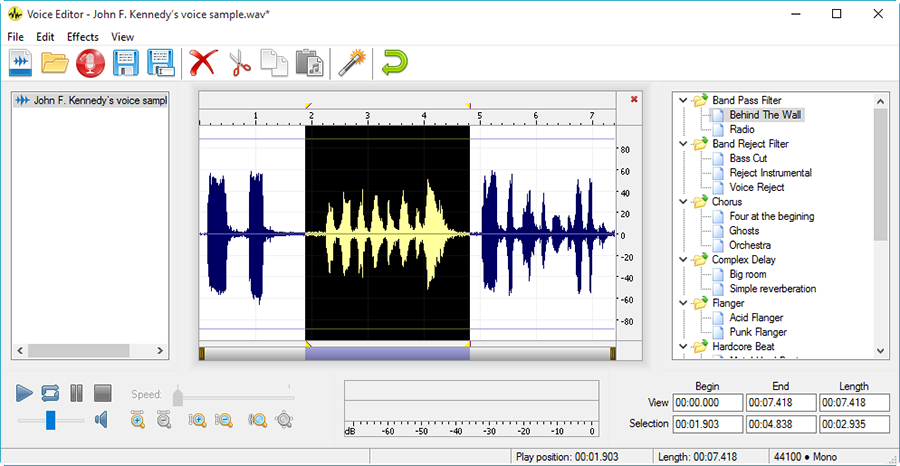 Редактирует и добавляет эффекты, чтобы создать файл модифицированного голоса в точном соответствии с вашими требованиями.