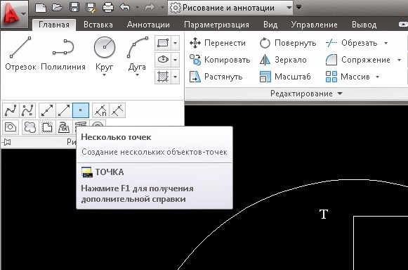 Кроме того, можно строить дугу не через точку, а еще и через центр, радиус и вторую точку.