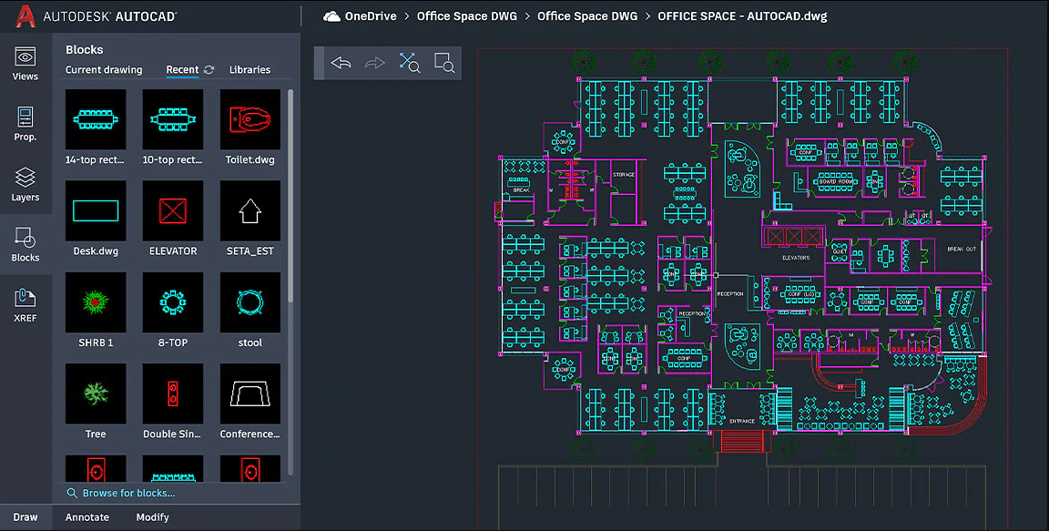 Новый элемент интерфейса в AutoCAD 2020 — Палитра блоков (не путайте с существовавшими ранее инструментальными палитрами), который пришел на смену традиционному окну вставки блока.