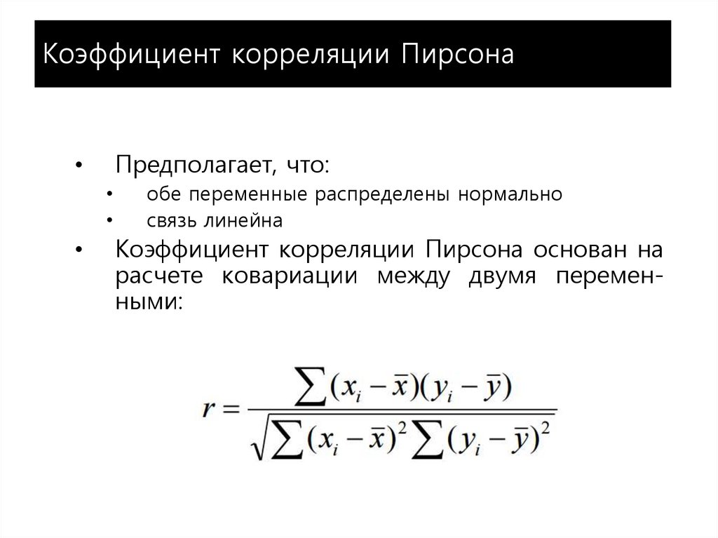 Коэффициент корреляции Пирсона относится к числу параметрических статистических критериев. Это означает, что для его использования в курсовой, дипломной или магистерской работе по психологии необходимо, чтобы психологические показатели удовлетворяли ряду условий, в частности, были распределены по нормальному закону. Если это условие не выполняется, то для анализа взаимосвязей между параметрами использовать коэффициент ранговой корреляции Спирмена.