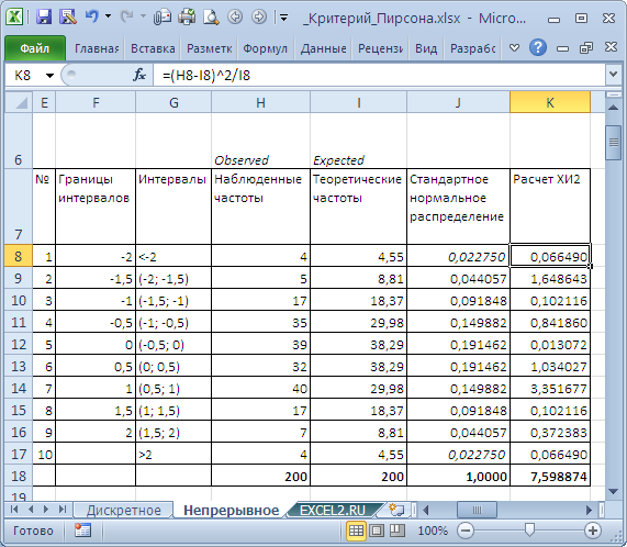 2. Находим значение критерия хи-квадрат Пирсона: