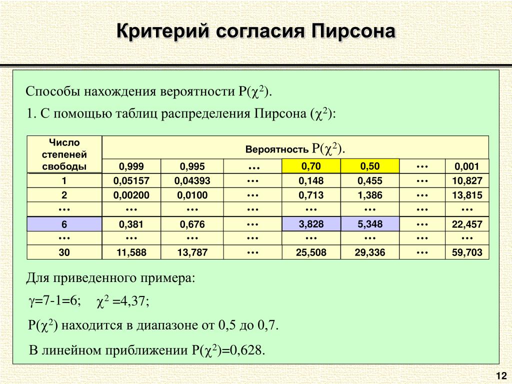 Расчет критерия согласия Пирсона