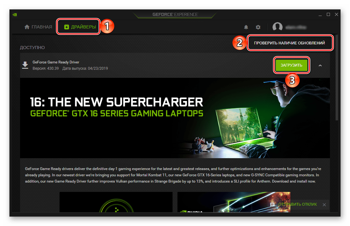 - Загружаем и устанавливаем драйвер видеокарты с оф.сайта Nvidia.