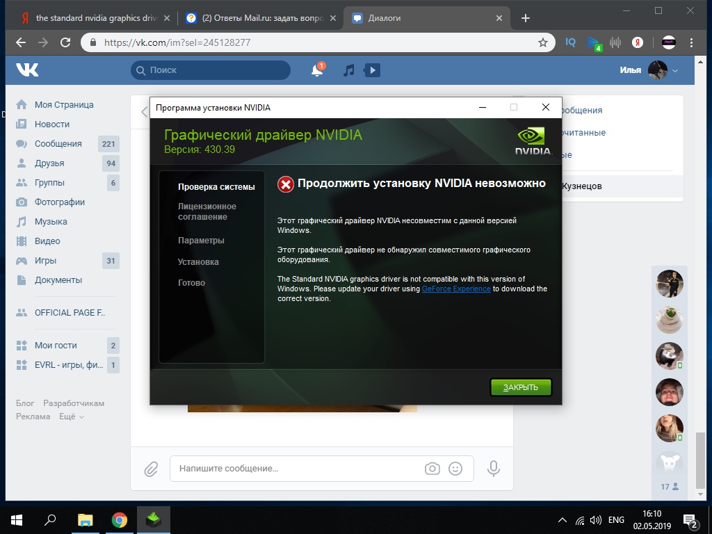 Вот так достаточно просто обновить драйвера видеокарты nvidia. Что делать если все таки все выше перечисленные способы не помогли?